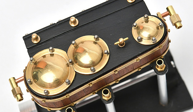 cylinder head, and the 12 miniature nickel bolts into the flat side. This photo of the finished engine shows all the minor details. |