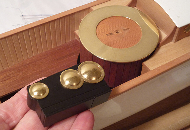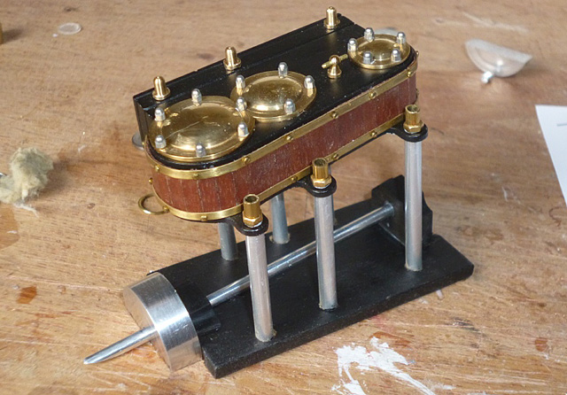 a) Drill three holes in the top to locate the three cylinder heads, three holes to locate the little brass widgets that go alongside them, and one for the 'tap' between cylinder heads 2 and 3.