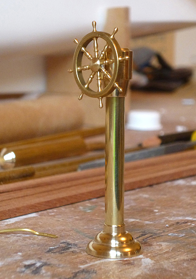 STEERING ASSEMBLY This is made from four parts – base, stem, top section and wheel. The base and stem are turned from brass rod; the stem is brass tube. The wheel is a commercially available model boat part.