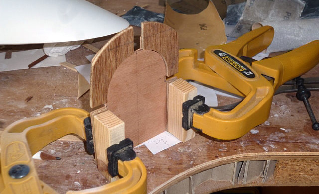 | Make another semi-circular former from 4mm ply and glue it around the top of the U-shape and onto the back of F10. This will help to support the seat. |